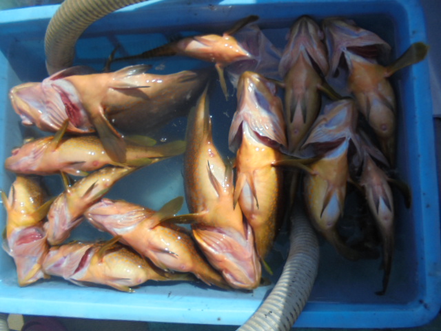 ・カサゴ:フカセ2m2~3本針、餌サバタン、ホタルイカ