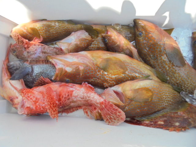 キジハタ 12尾、クロソイ 3尾、オニカサゴ 2尾、ウッカリ 7尾、