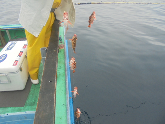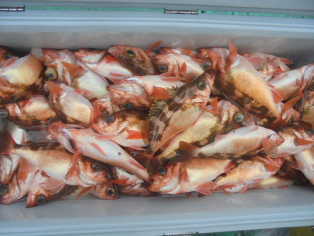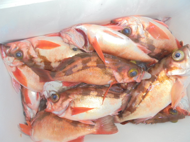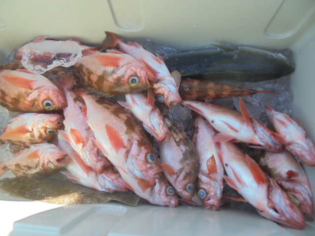 ・カサゴ:フカセ2m2~3本針、餌サバタン、ホタルイカ