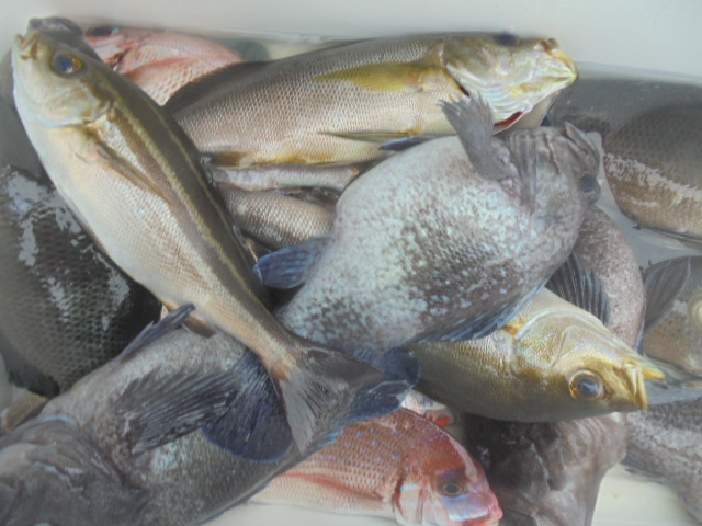 マダイ小~大 5尾、メジナ 7尾、イサキ 24尾、クロソイ 6尾、