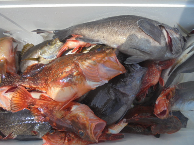 ・カサゴ:フカセ2m2~3本針、餌サバタン、ホタルイカ