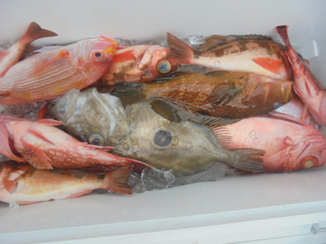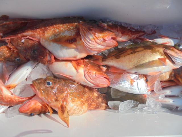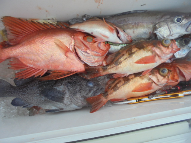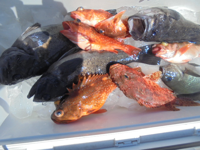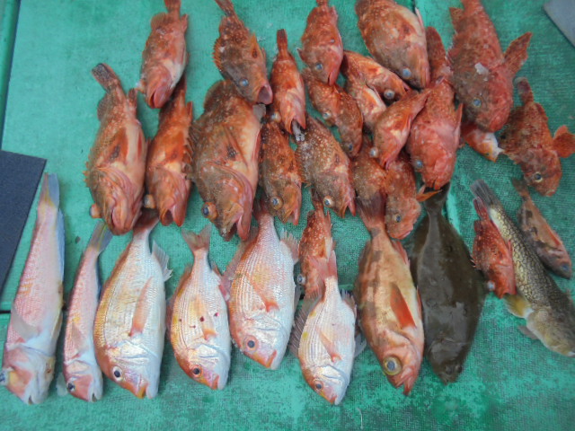 沖メバル 2尾、ウッカリカサゴ 4尾、オニカサゴ 1尾、キクカレイ 1尾、