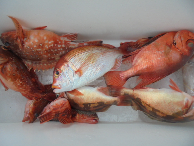 沖メバル 14尾、アラ 3尾、チカメキントキ 3尾、レンコダイ 3尾、