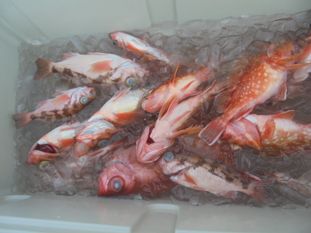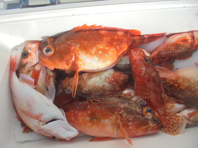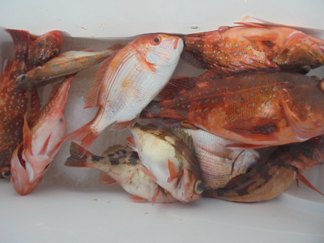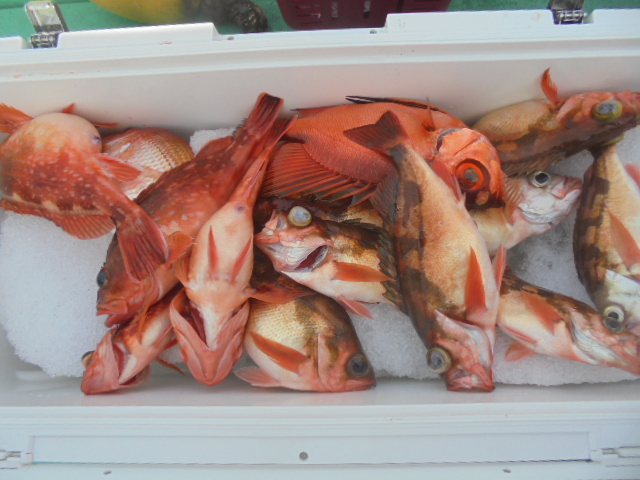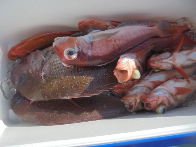 沖メバル 26尾、ウッカリカサゴ 16尾、レンコダイ 2尾、オニカサゴ 2尾、チカメキントキ 2尾、ヒメジ 2尾、