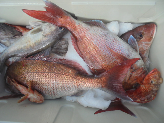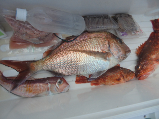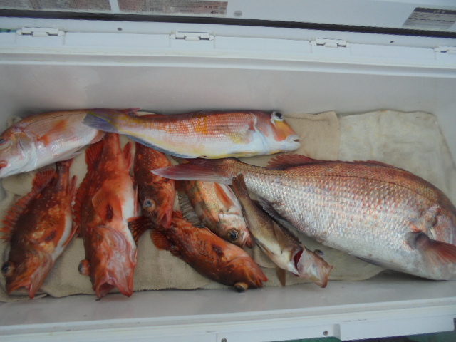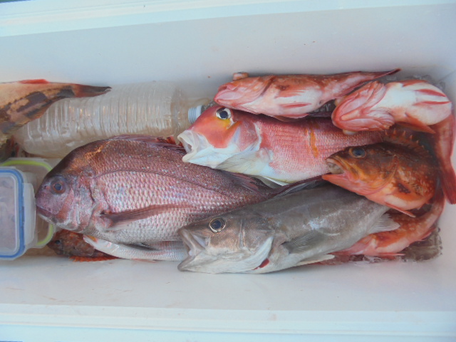 マダイ 3尾、レンコダイ 4尾、ウッカリカサゴ 12尾、アラ 1尾、