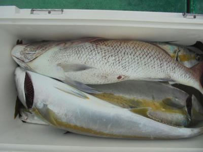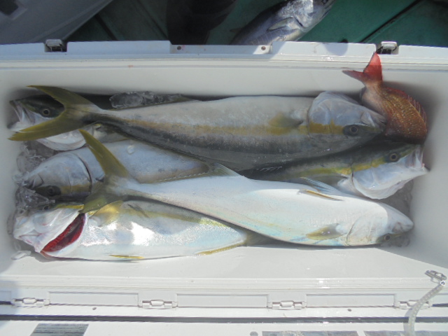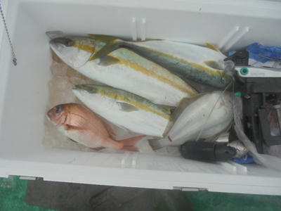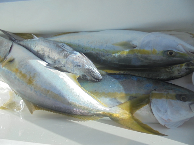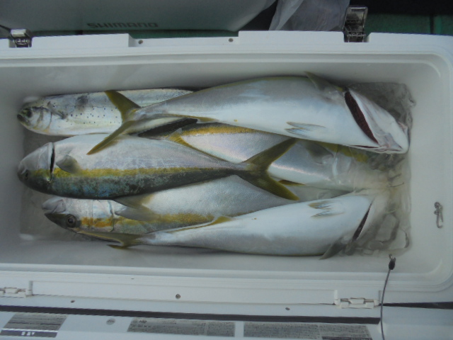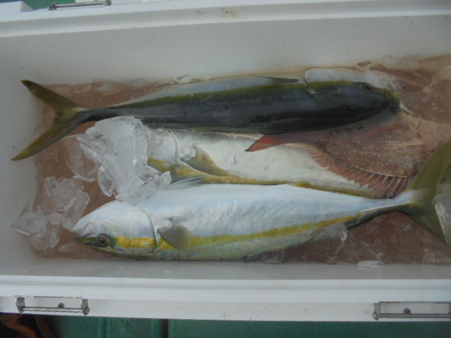 ヒラマサ 3尾、ワラサ 1尾、シイラ 1尾、