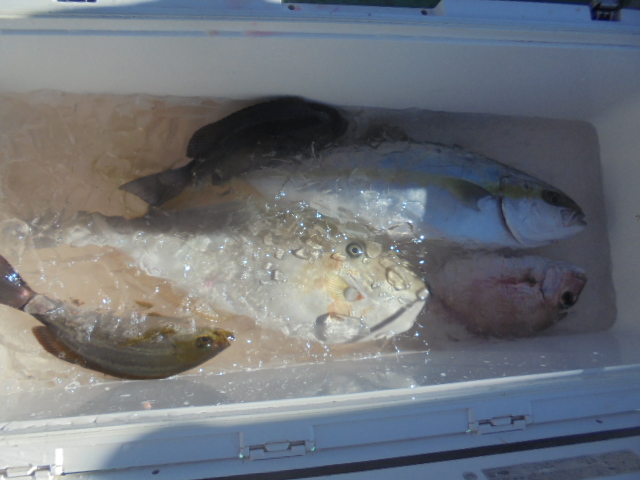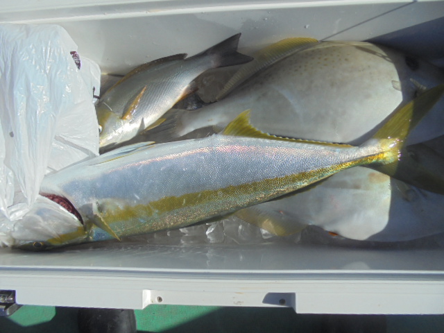 ヒラマサ 3尾、マダイ 1尾、イサキ 3尾、ウスバハギ 4尾、メジナ 1尾