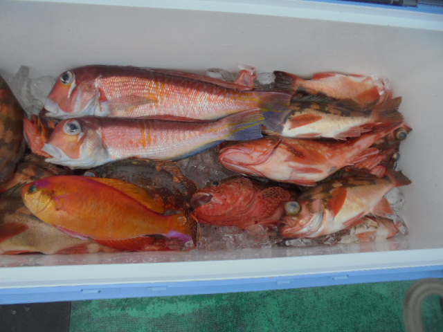 沖メバル 4尾、ウッカリカサゴ 5尾、レンコダイ 1尾、ワラサ 1尾、