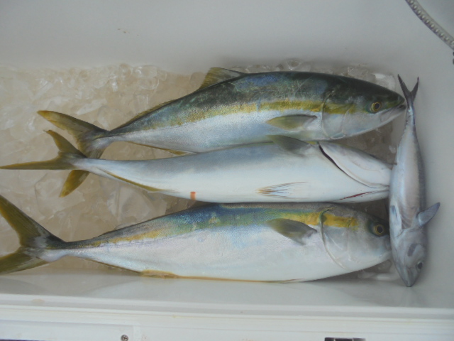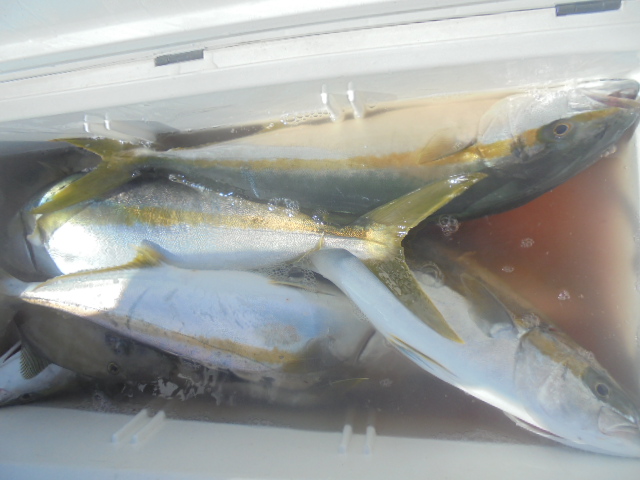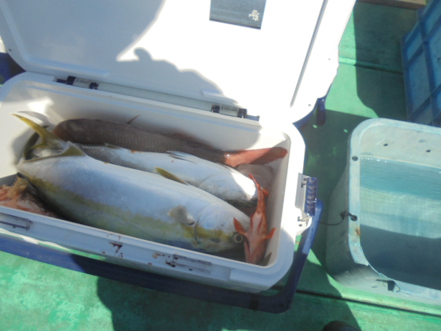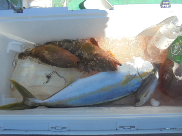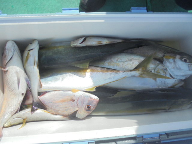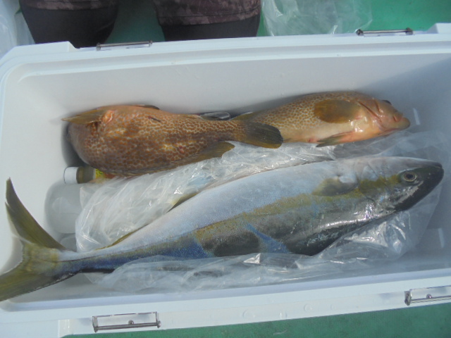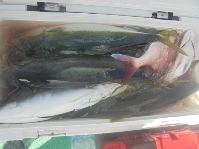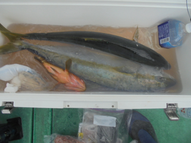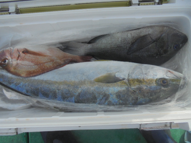 ヒラマサ 15尾、イナワラ 4尾、マダイ小 3尾、イサキ 2尾、