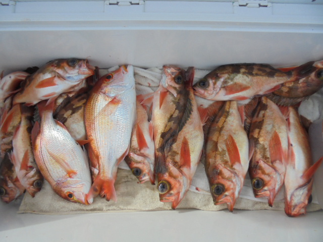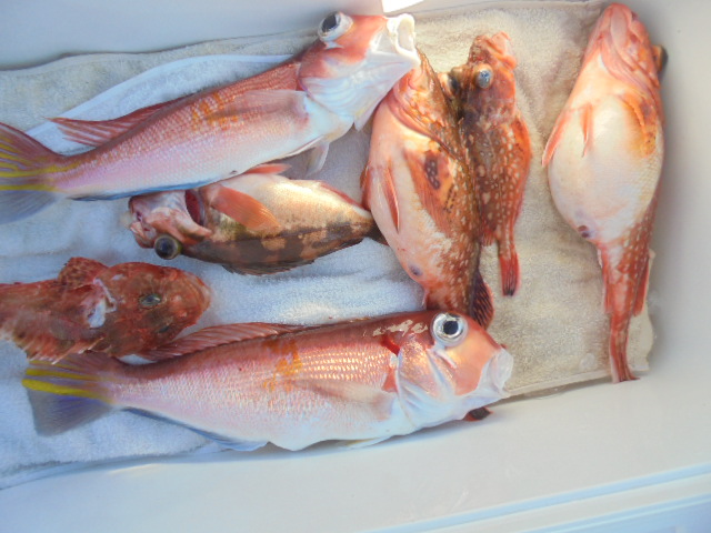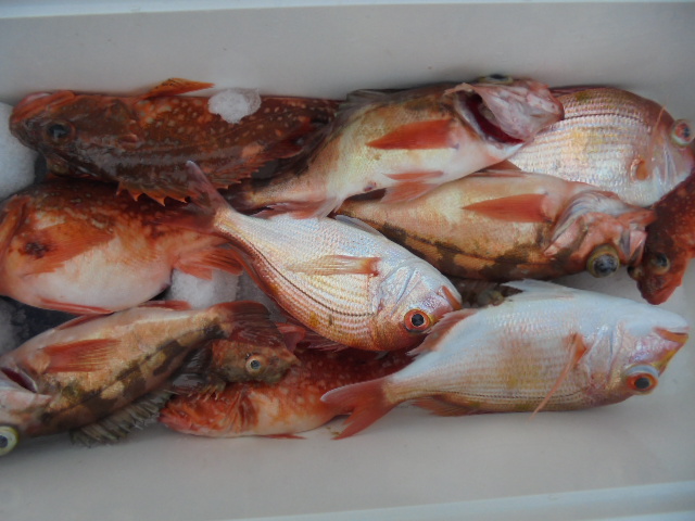 沖メバル 8尾、チカメキントキ 1尾、アマダイ 3尾、オニカサゴ 1尾、