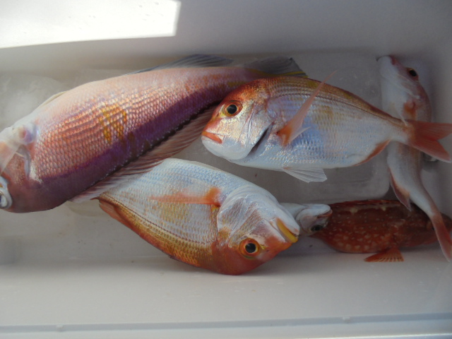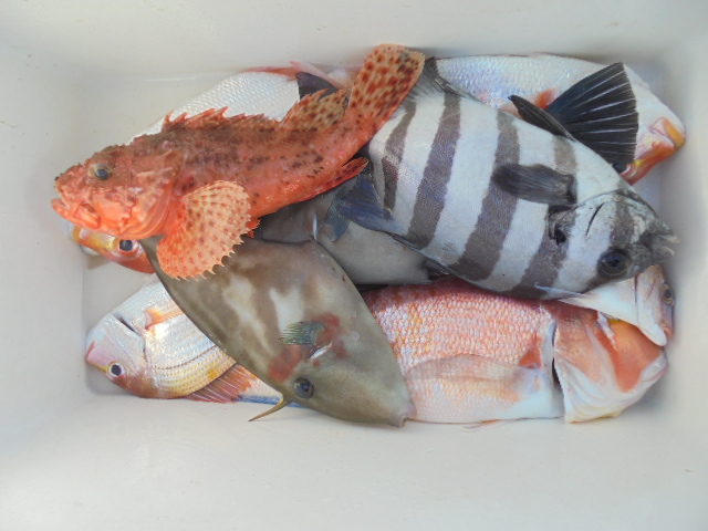 マダイ小 3尾、イシダイ 1尾、ウマヅラ 1尾、レンコダイ 6尾、