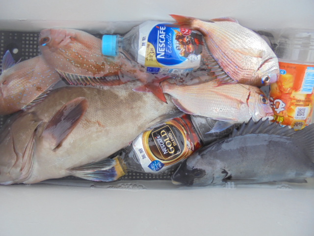 マダイ小 4尾、マハタ2.5㎏ 1尾、イシダイ 1尾、