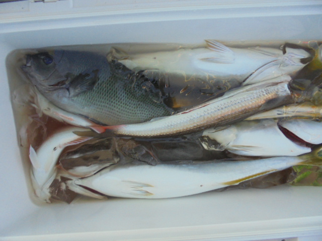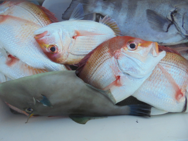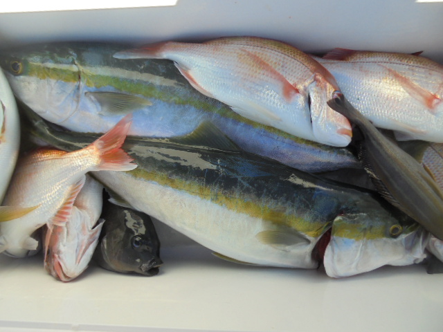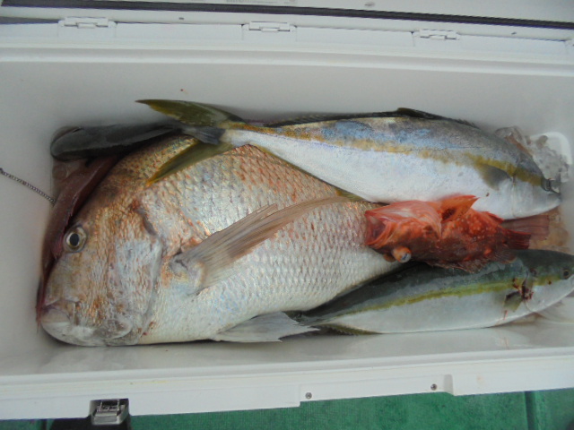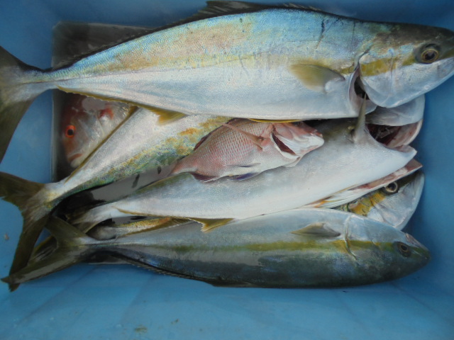 マダイ 4尾、イシダイ 1尾、イナワラ 3尾、イサキ 2尾、ウマヅラ 2尾、メジナ 5尾、シイラ 2尾、ヒラマサ 2尾、レンコダイ 11尾、