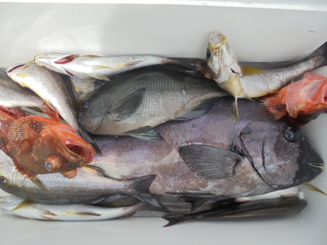 イサキ 11尾、イシダイ2.8㎏ 1尾、キジハタ 1尾、メジナ 1尾、