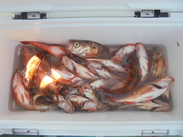 ・カサゴ:フカセ2m2~3本針、餌サバタン、ホタルイカ