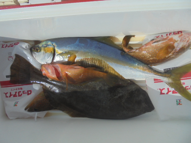 イサキ 5尾、ヒラマサ 1尾、ヒラメ 1尾、キジハタ 18尾、カサゴ1尾、