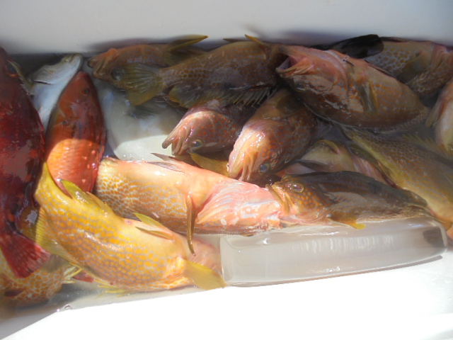キジハタ 34尾、カサゴ 2尾、イサキ 1尾、ベラ 2尾、