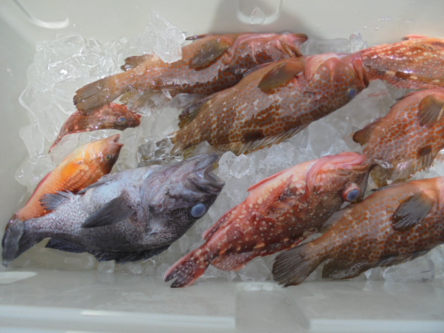ウッカリカサゴ 8尾、オニカサゴ 1尾、レンコダイ 2尾、エソ8尾、