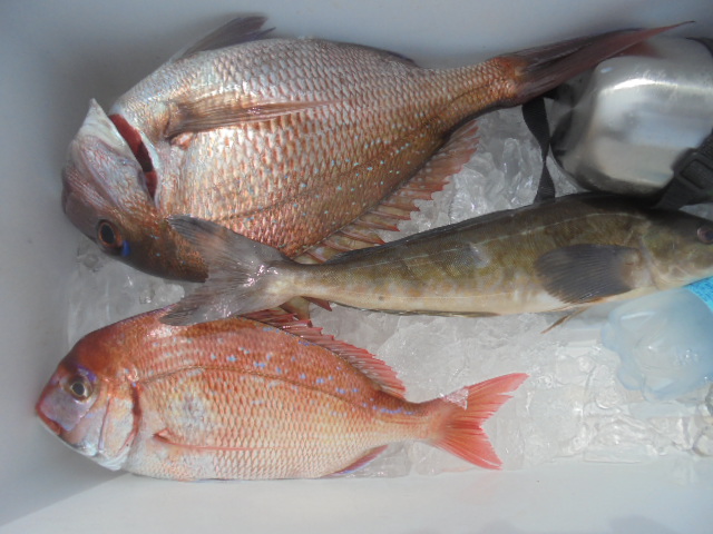 マダイ0.8~2.0㎏ 6尾、チカメキントキ 5尾、沖メバル 1尾、