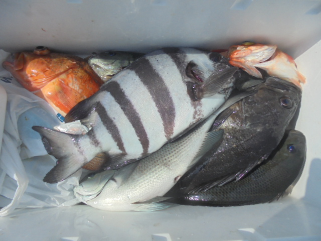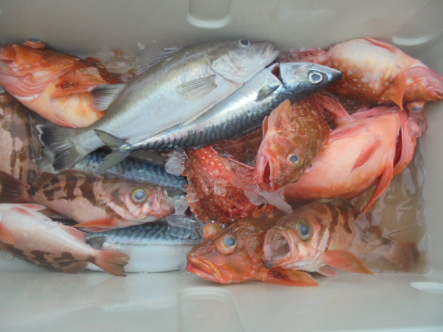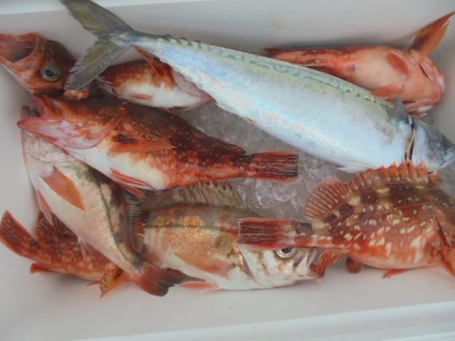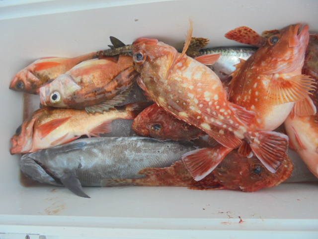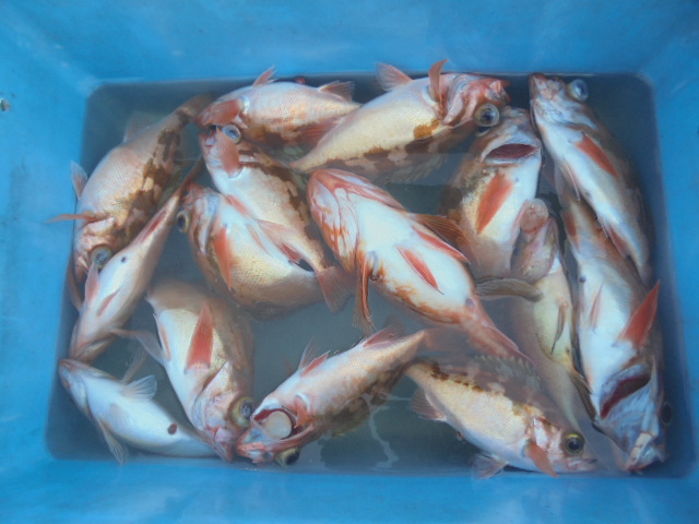 沖メバル 43尾、ウッカリカサゴ 12尾、エゾメバル 12尾、ホッケ 2尾、サバ 1尾、アジ 1尾、ムシカレイ 1尾、キツネメバル 1尾、