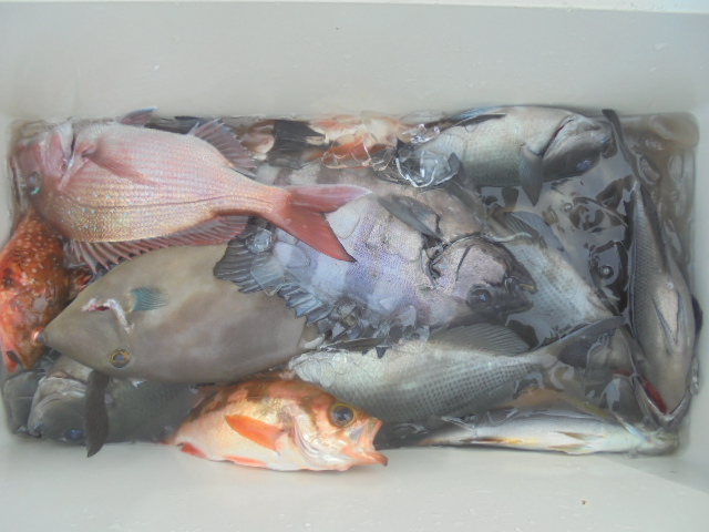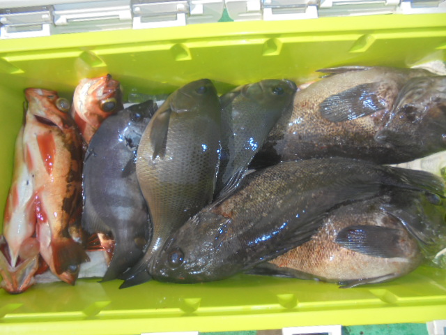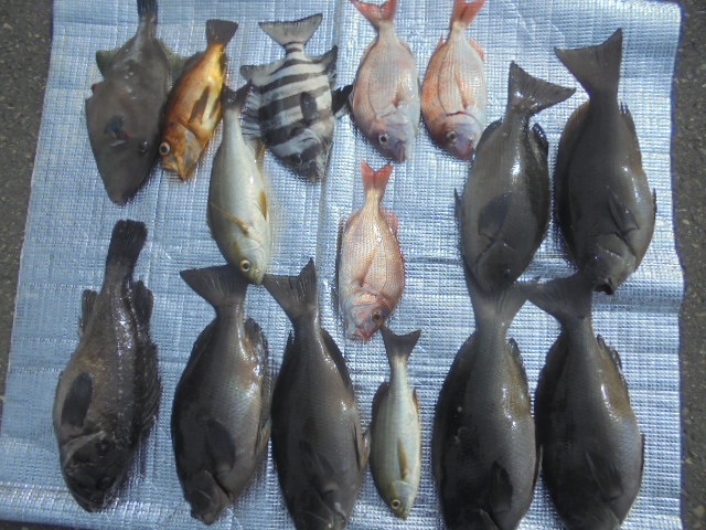 マダイ中小 5尾、メジナ 12尾、イサキ 2尾、イシダイ 4尾、