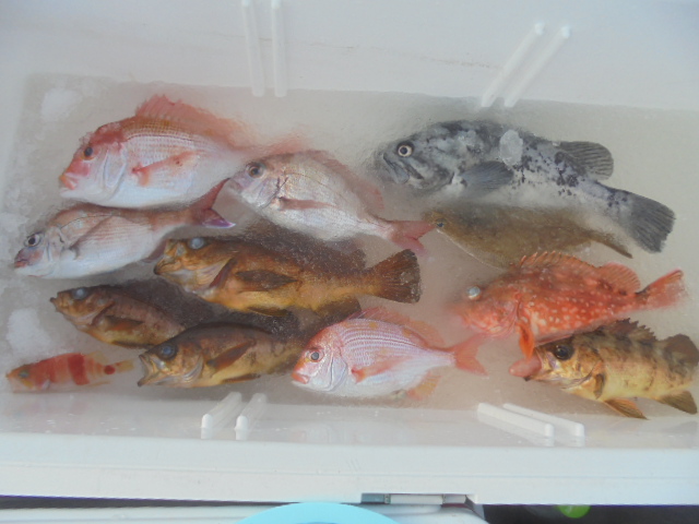 沖メバル大~中 31尾、エゾメバル 23尾、マダイ2㎏ 1尾、