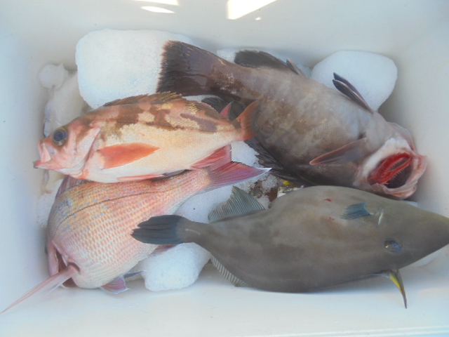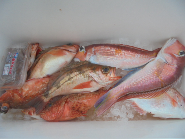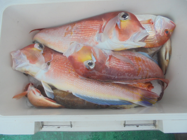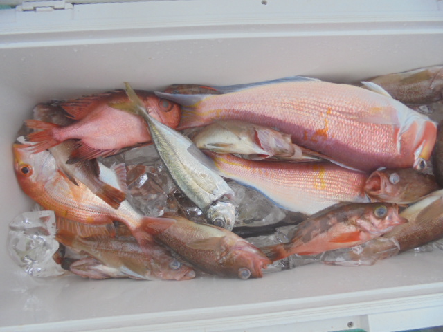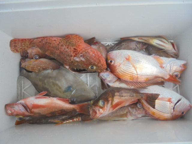 チカメキントキ 3尾、オニカサゴ 1尾、ウッカリカサゴ 1尾、ウマヅラ 1尾、レンコダイ 15尾、アマダイ特大 8尾、