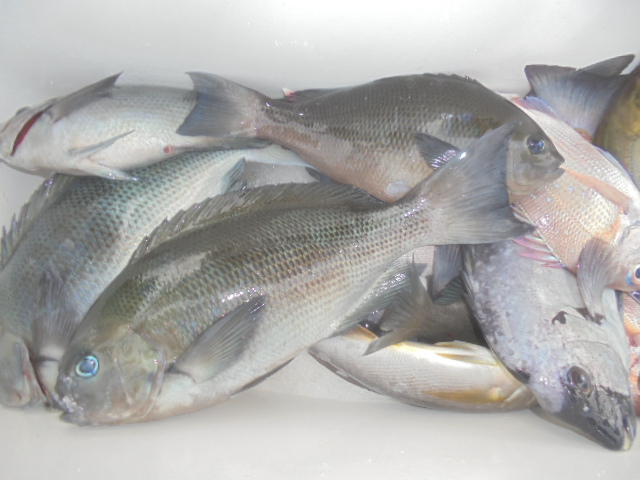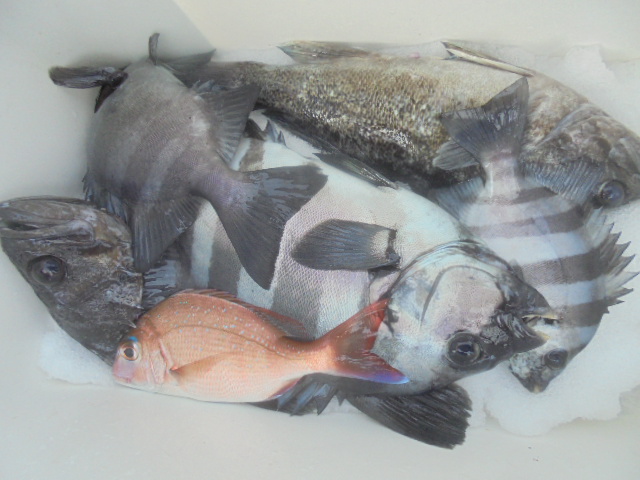 マダイ手の平~0.5 18尾、メジナ 10尾 イシダイ 12尾、