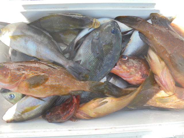 キジハタ 2尾、カサゴ 2尾、イサキ 20尾、マダイ小 5尾、メジナ 3尾