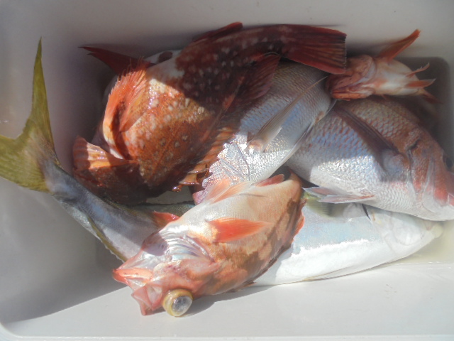 ウッカリ 1尾、アマダイ 1尾、レンコ 3尾、サバ 1尾、