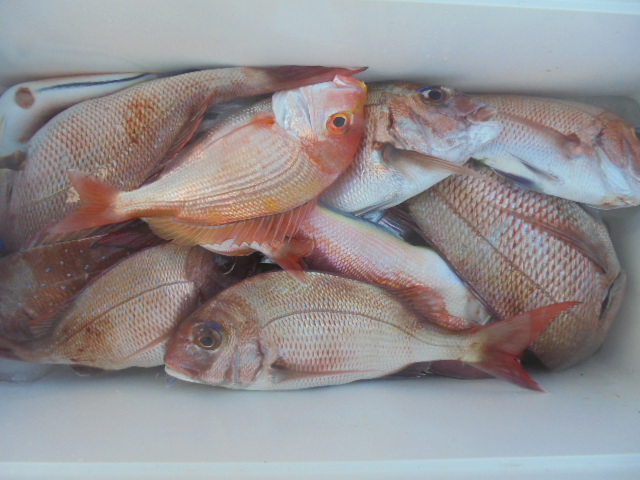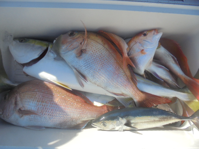 マダイ0.5~2.0㎏ 13尾、ワラサ 2尾、レンコ 6尾、