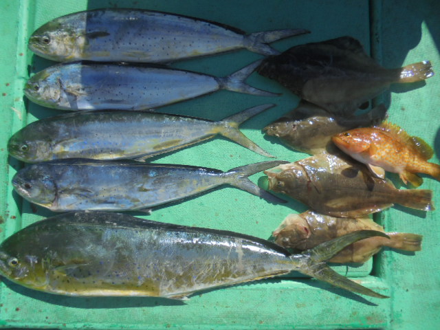 ソウハチ 4尾、シイラ 5尾、キジハタ 1尾、丸ソウダ 10尾、