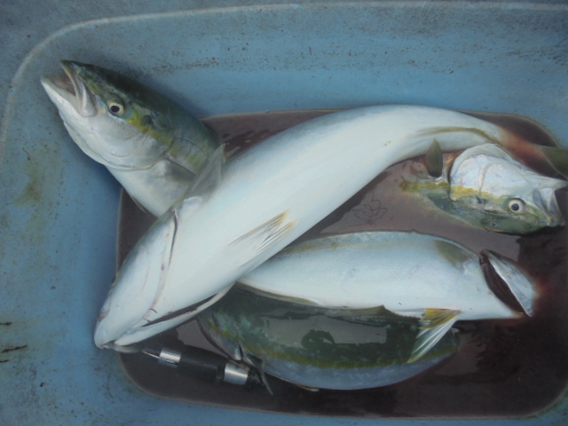 マダイ小 1尾、ヒラマサ 2尾、ワラサ 2尾、イナワラ 3尾、