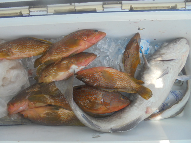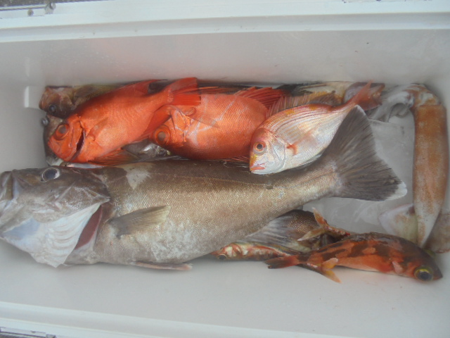 チカメキントキ 2尾、レンコ 1尾、アラ 1尾、カサゴ 2尾、