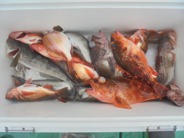 カサゴ 6尾、沖メバル 1尾、クロメバル 2尾、レンコ 1尾、