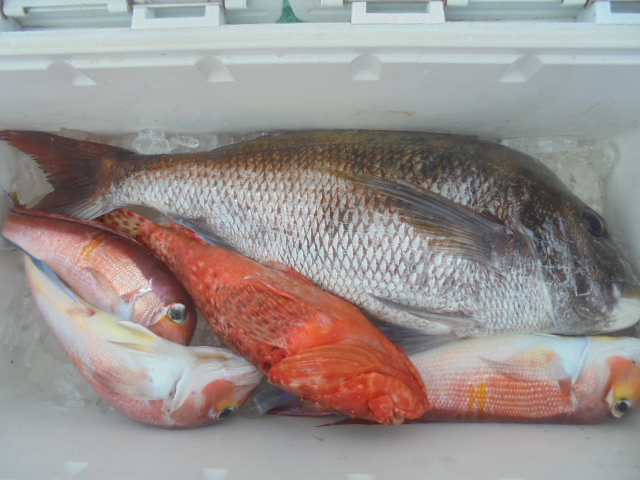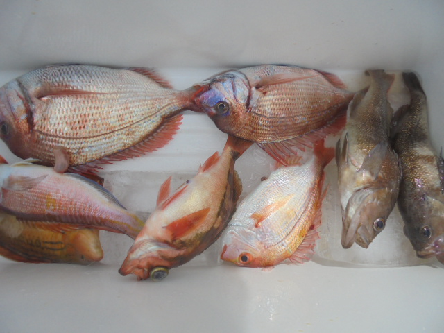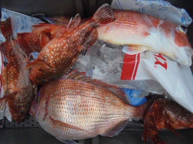 マダイ0.6~3.5㎏ 4尾、アマダイ 5尾、オニカサゴ 1尾、