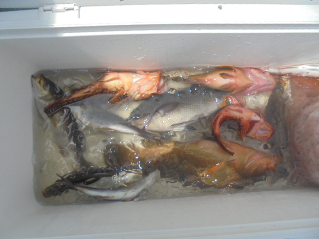 ブリ 1尾、サバ 3尾、ウッカリカサゴ 4尾、レンコダイ 3尾、