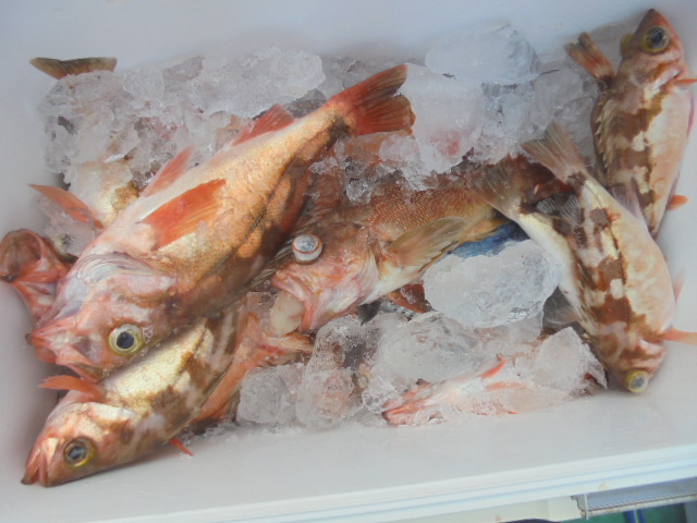 ・カサゴ:フカセ2m2~3本針、餌サバタン、ホタルイカ