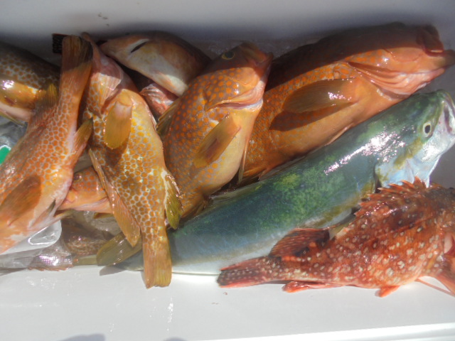 ・カサゴ:フカセ2m2~3本針、餌サバタン、ホタルイカ